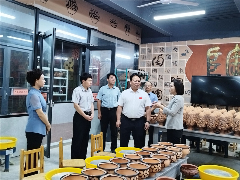 魏雷東一行分別到我公司的生產車間、研學基地、彩陶藝術館等地進行了實地考察,對我公司的彩陶制作工藝、非遺保護、文創研發等工作給予肯定,并就下一步校企合作、名師工作室等事宜進行座談交流。