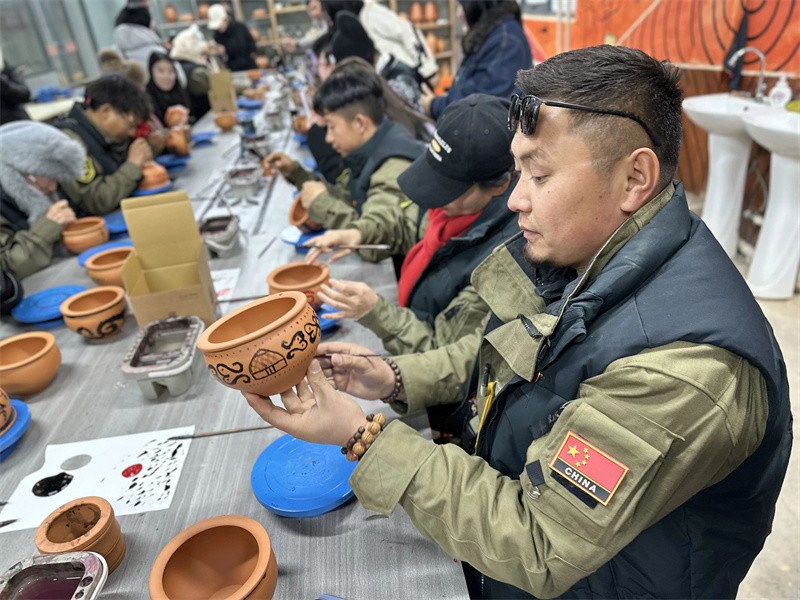 體驗(yàn)區(qū)內(nèi),一場別開生面的彩陶彩繪活動拉開帷幕。駱駝隊(duì)員們在陶藝師指導(dǎo)下,將絲路旅途中的見聞凝于筆端——駝隊(duì)剪影與仰韶文化奇妙融合,古老彩陶與異域紋飾交相輝映。