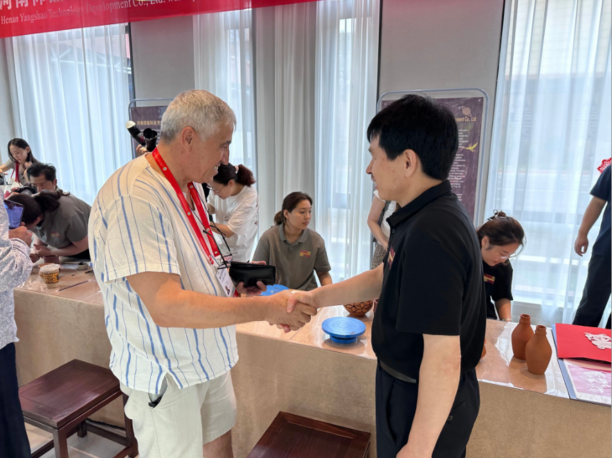 更新時間:2025-08-07 瀏覽次數:120次此次峰會匯聚全球目光,是推動不同文明對話、促進國際合作的重要平臺。河南仰韶科技開發有限公司展臺以獨特的仰韶彩陶制作體驗,成為各國嘉賓的打卡地。彩繪技師以嫻熟的筆法繪制出精美圖案,引起參加峰會的中外來賓的極大興趣,大家紛紛動手體驗彩繪。