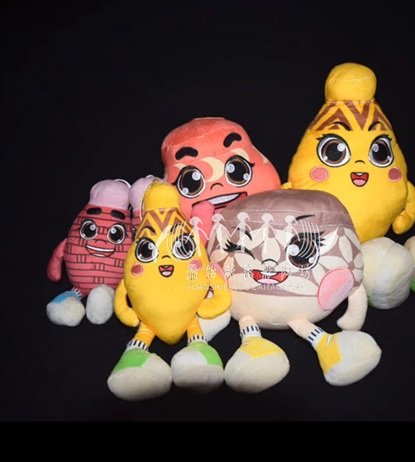 文創毛絨玩具娃娃尖底瓶雙聯壺月牙罐花瓣紋曲腹盆
