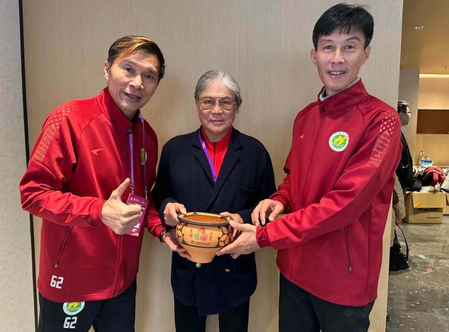 王新軍仰韶文化非遺作品贈(zèng)霍震霆 “全運(yùn)花開”彩陶盆傳遞家國(guó)情懷