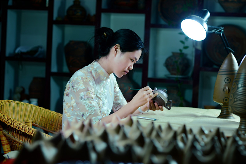 選用優質陶土,加上一把黃河泥,經過打磨、雕刻、燒制等系列工序后,搖身一變成了一個古色古香的彩陶。河南仰韶科技開發有限公司總經理、仰韶彩陶傳承人劉新安說,“我們全部都是人工制陶,秘法作業,滿輪拉坯成型,天然無機顏料彩繪,差不多整個制作過程要兩周左右。”